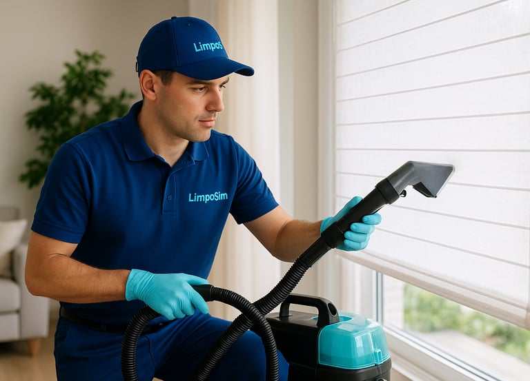 Limpeza profissional de persianas e cortinas, com métodos modernos que dispensam a retirada das persianas do local, realizando o serviço no próprio ambiente, de forma rápida, segura e eficaz.